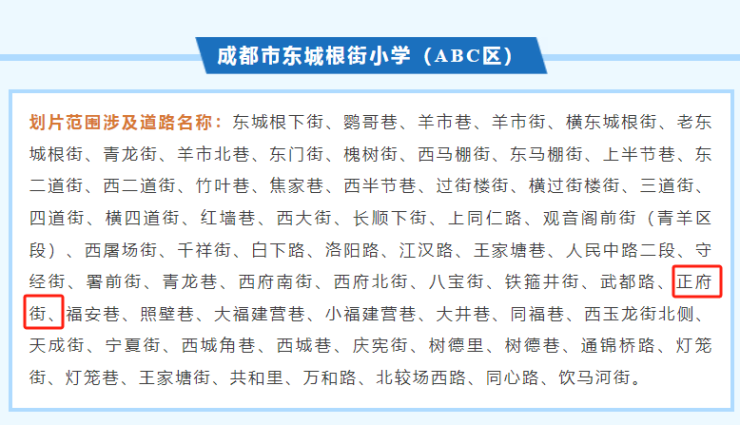 项目的另一大优势,是学区,由于项目早已交房,因此门牌号已经确定为正府街83号。根据青羊区2025年划片,SG珊顿道属于成都市东城根街小学划片范围。始建于1963年的东城根街小学又名巴金小学,是成都市首批重点小学之一,学校目前有ABC三个校区,以“小而精”著称。