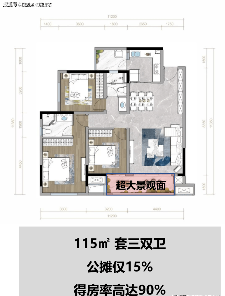 95%得房率(市场普遍75%-85%)