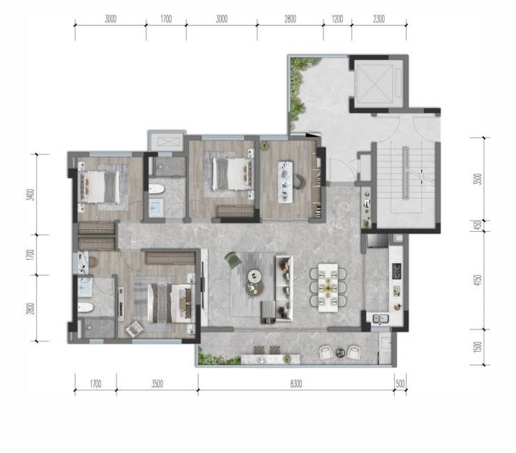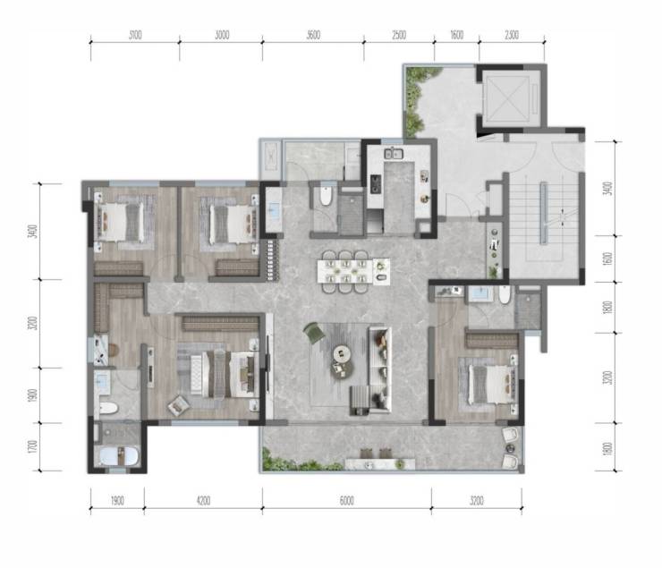 ● D户型 【建面约168㎡ 四室两厅三卫】约9M巨幕阔境阳台,阳光景观尽意挥洒N+1灵动空间,构筑生活的变幻想象