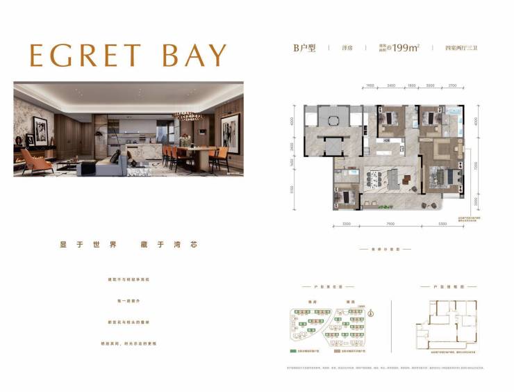 B户型199㎡户型:约60㎡的行政级主卧系统;约10米巨幕阳台