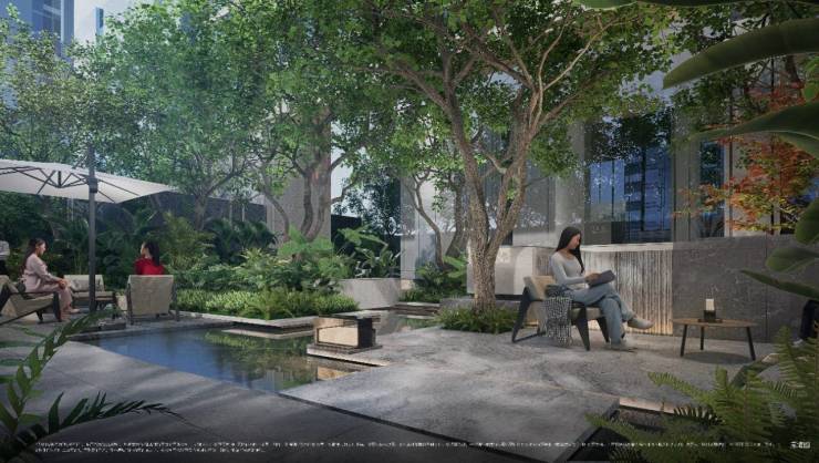 景观复刻曼谷四季酒店,植入德国进口大木贼、南欧油橄榄树,中庭打造D10同款悬浮水上卡座