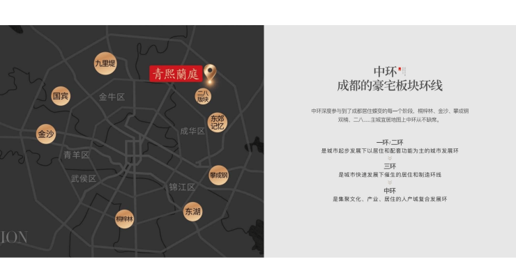【顶流板块】黄金中环-主城光荣的延续与更新。为响应核心城市发展战略,成都正式提出“5+1“核心区域,被誉为“黄金中”的2.5环串联包含桐梓林、金沙、攀成钢、双楠、二八板块等在内的核心高端居住板块,成为不可复制的城市资源汇聚之处。