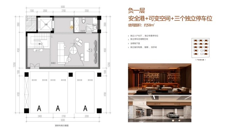 花园面积约57㎡(入户花园约17㎡+屋顶花园约40㎡)