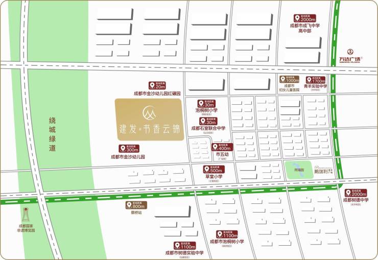 文脉资源:紧邻泡桐树小学桐欣校区(直线500米)、石室联中弘文校区(2024年投用),2公里内覆盖树德中学光华校区等5所优质学校。