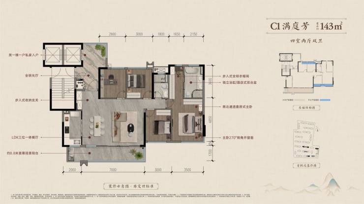 低密改善:2T2纯板式结构,层高3米,户型南北通透,191㎡端厅设计享270°景观视野。
