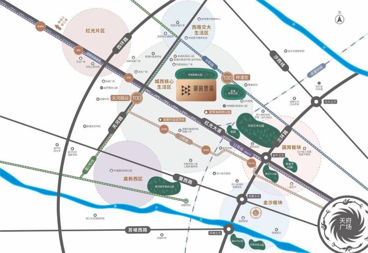 双TOD+双地铁:紧邻天河路TOD(规划中)、梓潼宫TOD(在建),未来交通升级潜力大。