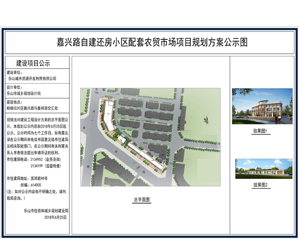 嘉兴路自建还房小区配套农贸市场项目规划方案公示图