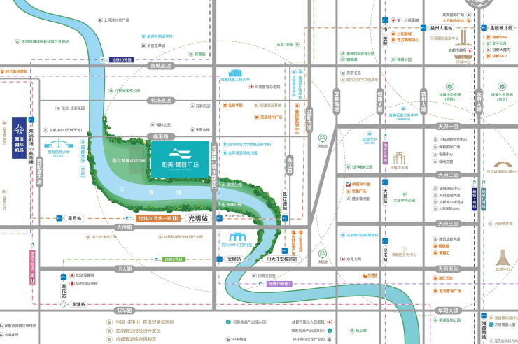 双地铁环绕 · 15分钟出入城南大源!吸附周边3公里内,近60万常住人口!环高校经济圈,四大高校加持,激活消费活力!江安河畔 · 一河两公园,惟此生态新高地!
