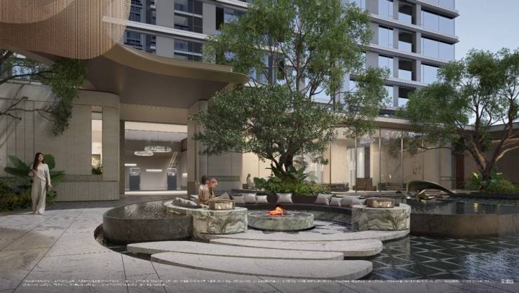 景观复刻曼谷四季酒店,植入德国进口大木贼、南欧油橄榄树,中庭打造D10同款悬浮水上卡座