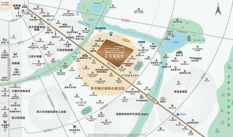 教育:项目配建幼儿园/小学(规划中),来龙中学直线1公里,成都大学约2公里。