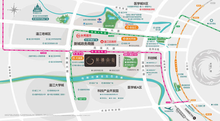 🚈交通:4/17号线双轨地铁 从容穿行城市距地铁4号线/17号线凤溪河站约500米,是片区在售项目中距地铁最近项目,地铁19号线即将通车,紧邻凤溪大道,向西接驳光华8线。