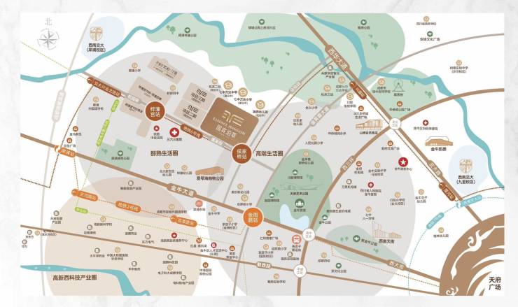 项目位于金牛国宾板块与郫都交界处,坐享TOD开发红利(远期商业体量约3万㎡),紧邻七中万达新校区,适合注重学区的年轻家庭。