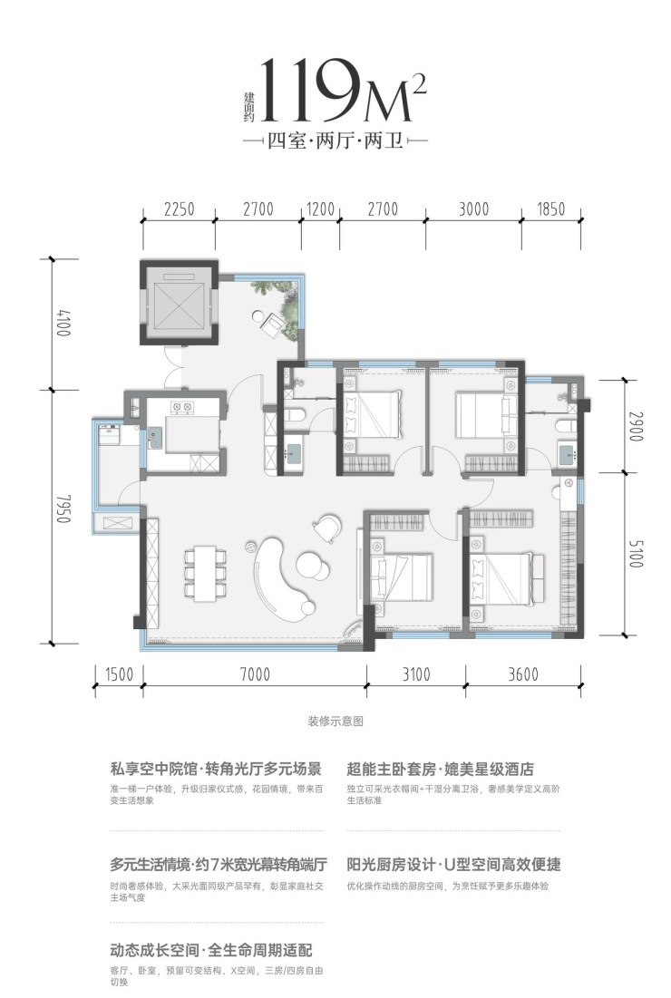 装标含地暖、新风系统,参照上海金茂府科技住宅标准