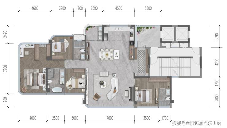 交付标准3990元/㎡全精装交付,全景落地窗