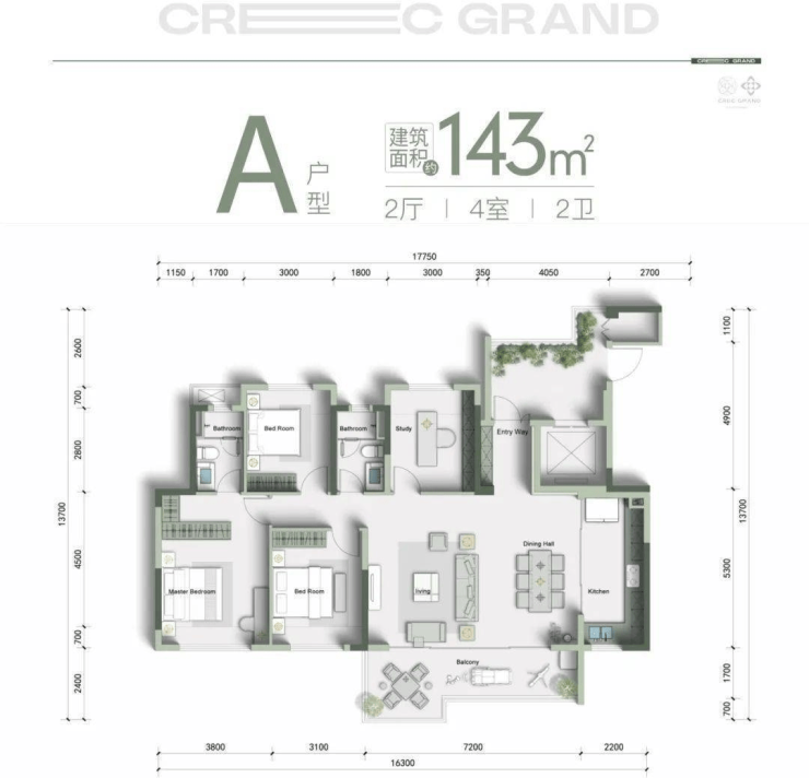 128-143㎡四房:横厅设计+双套房,改善标杆