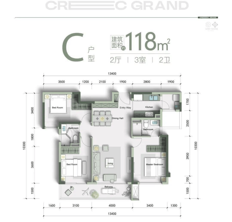 精装标准:含三大件(中央空调+新风+地暖)