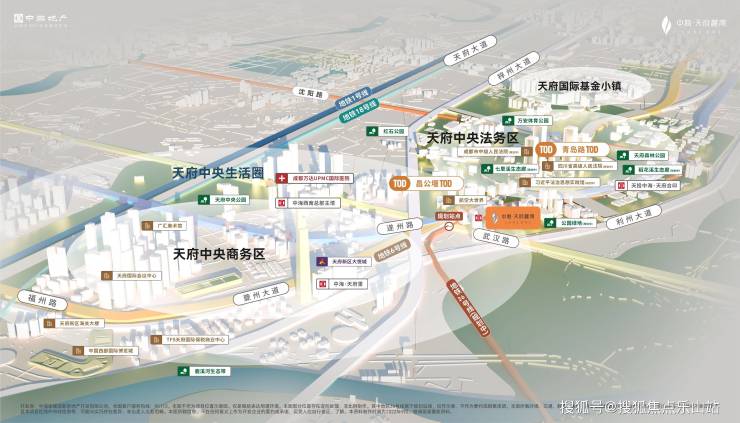 医疗:华西天府医院、省二医院天府院区(即将开业)、万达国际医院(建设中)、天府新区奥亚医院、天府新区人民医院、玛利亚天府妇产儿童医院。