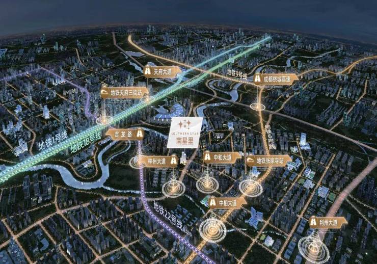 项目紧邻天府大道”城市地标轴“+梓州大道”城市产业轴“,双轴线串联金融城、软件园、新川科技园等重要产业核芯区,畅享地铁1号线天府三街站(已运营)、6号线张家寺站(已运营)、22号线临江村站(规划中),高效便捷间逸享国际城南优渥生活。