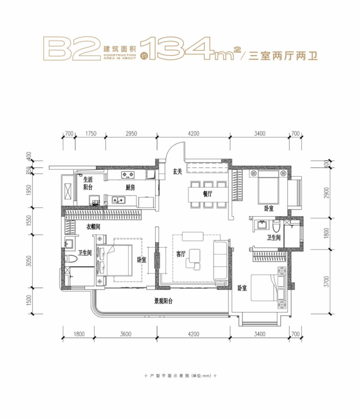 ☆B2 建筑面积约134㎡ 三室两厅两卫