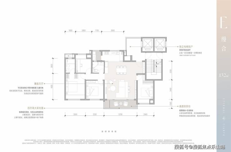 户型面积核心亮点空间特色A/B2型100㎡约6米横厅+双阳台H型厨房/LDKG一体化布局C型103㎡L型玄关+双功能阳台主卧飘窗+独立卫浴D型112㎡约6.8米奢阔横厅独立电梯厅+双排衣帽间E型132㎡四开间朝南+方厅百变空间独立电梯+双阳台系统
