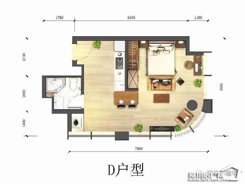 D户型:建筑面积 65.45㎡ 套内面积45.29㎡