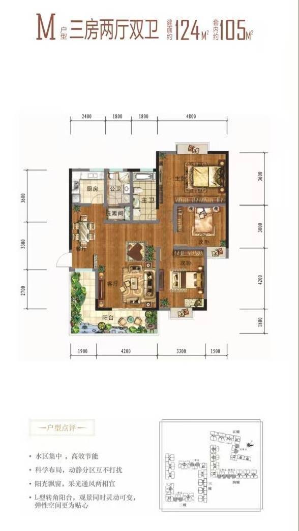 🌈面积区间:120-256㎡(主力户型122,128,140㎡套三双卫,128-256跃层)