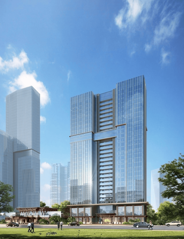 承袭现代主义大师密斯·凡德罗“少即是多”理念,玻璃幕墙与垂直线条交织,打造天府中轴地标视觉。