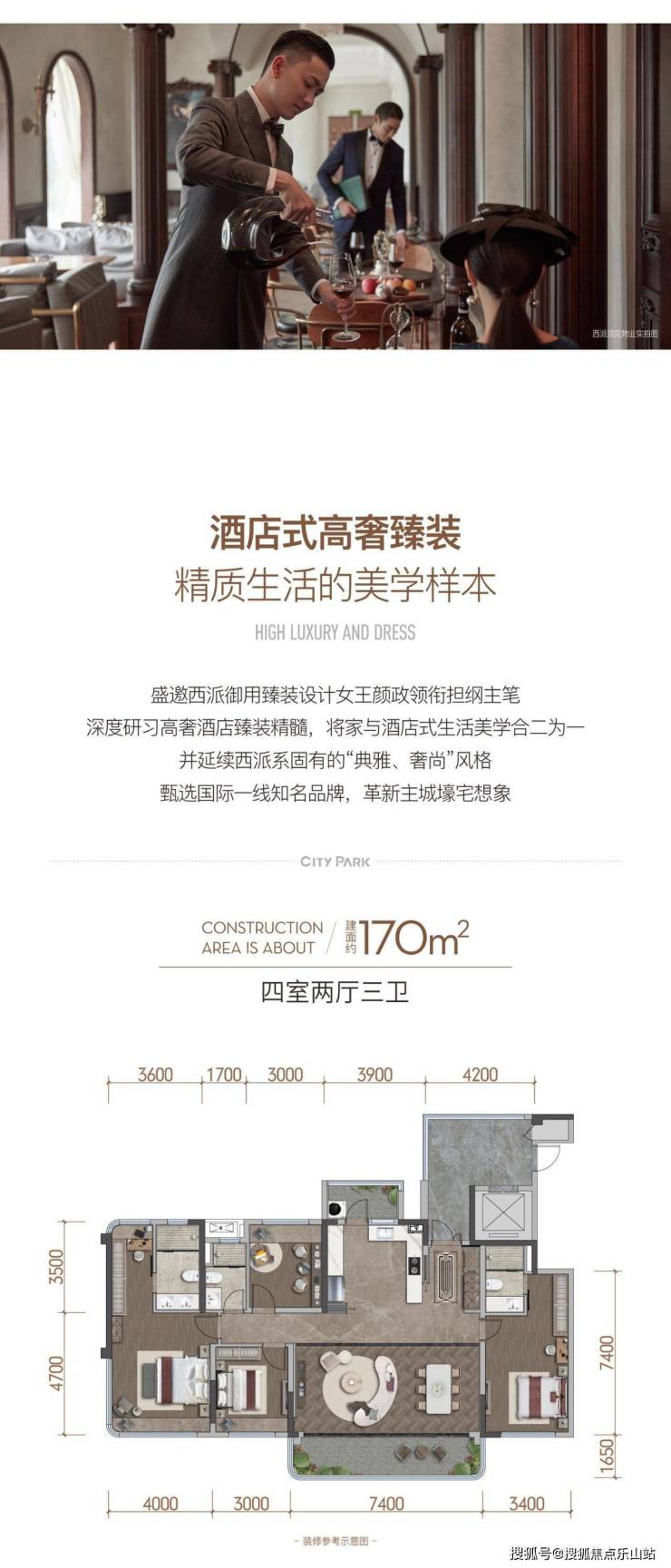 参照酒店“行政酒廊”的方式,融合“东方之意”与“西方之境”,将静谧、隐贵、佗寂、高级感集于一体,打造高定私享会所、下沉式庭院及3大主题架空层。配置泳池、私宴厅、健身房等,以多功能的私属奢享,承载丰富的生活内涵,创造超越时间与空间的际会场景