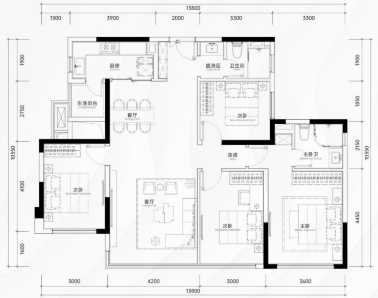 建面约143㎡(四房):主流改善面积,总价454万起,性价比极高;