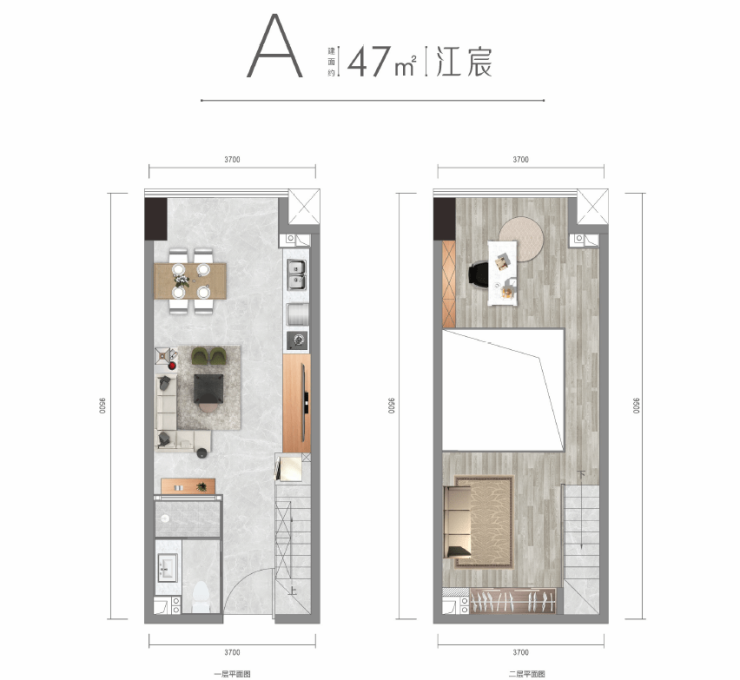 47-68㎡小户设计,4.2米层高可隔双层,实得面积达70-100㎡;