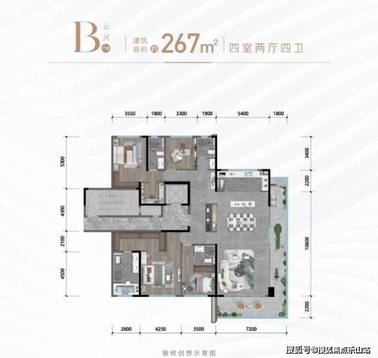 建面约267㎡云河户型四室两厅四卫揽星邀月,宽境犒赏人生