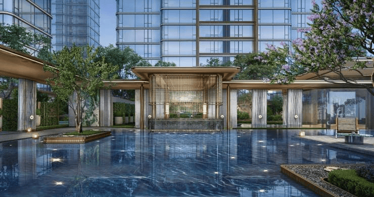 · 一重礼序:东方阙庭约95米超级城市界面,奢石名木荟萃,东方威仪阙庭