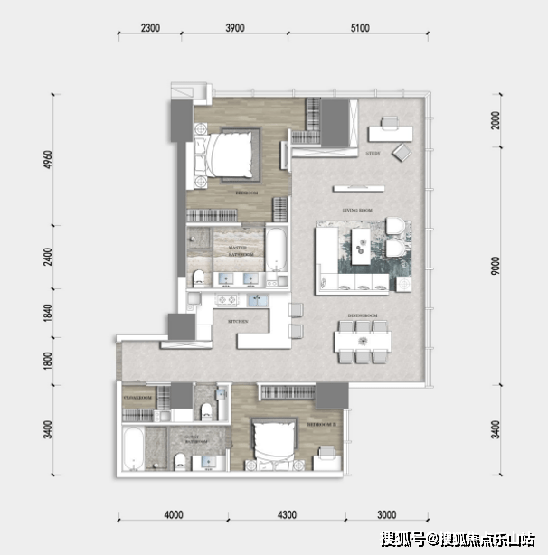主力户型:98/150/173户型B7:98㎡(套一双卫)