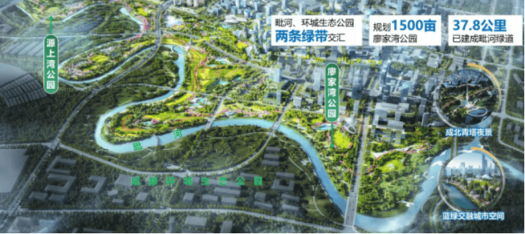 廖家湾片区是新都中心城区规划的两大“ 中心 ”之一, 围绕 “蓉北廖家湾 ·活力公园城 ”定位 ,核心启动区将按照“一园四脉五岛 ”空间 结构规划 ,打造“未来社区绿智样板 、数字科创自贸客厅 、国际交往新消基地 、健康时尚全龄服务 ”的未来公园社区 。