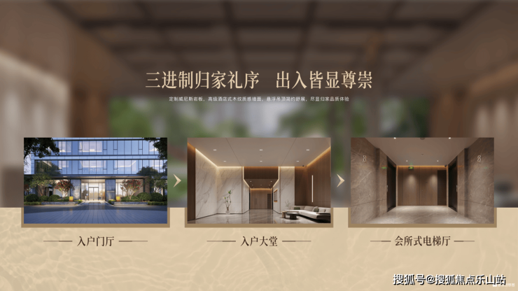 ·二进制入户大堂——高级酒店式木纹质感墙面,悬浮吊顶简约舒展,尽显归家尊崇感。