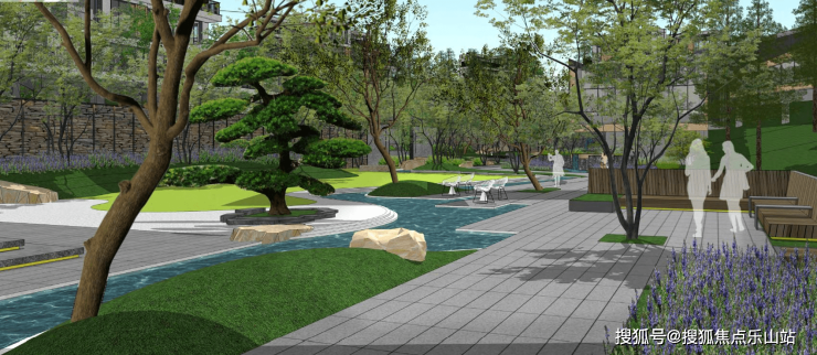 4、多重风格景观组团,营造诗意居住体验“一门一脉两苑五坊”景观布局,在保留原生景观植被的基础上,引用传统古诗词中的“水、石、林、云”意向元素,将现代生活方式与诗意精神境界完美交融,打造超脱俗世繁华之外的人生理想居所。