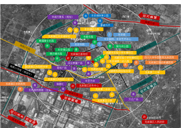 外部1公里覆盖东安湖公园+驿马河公园
