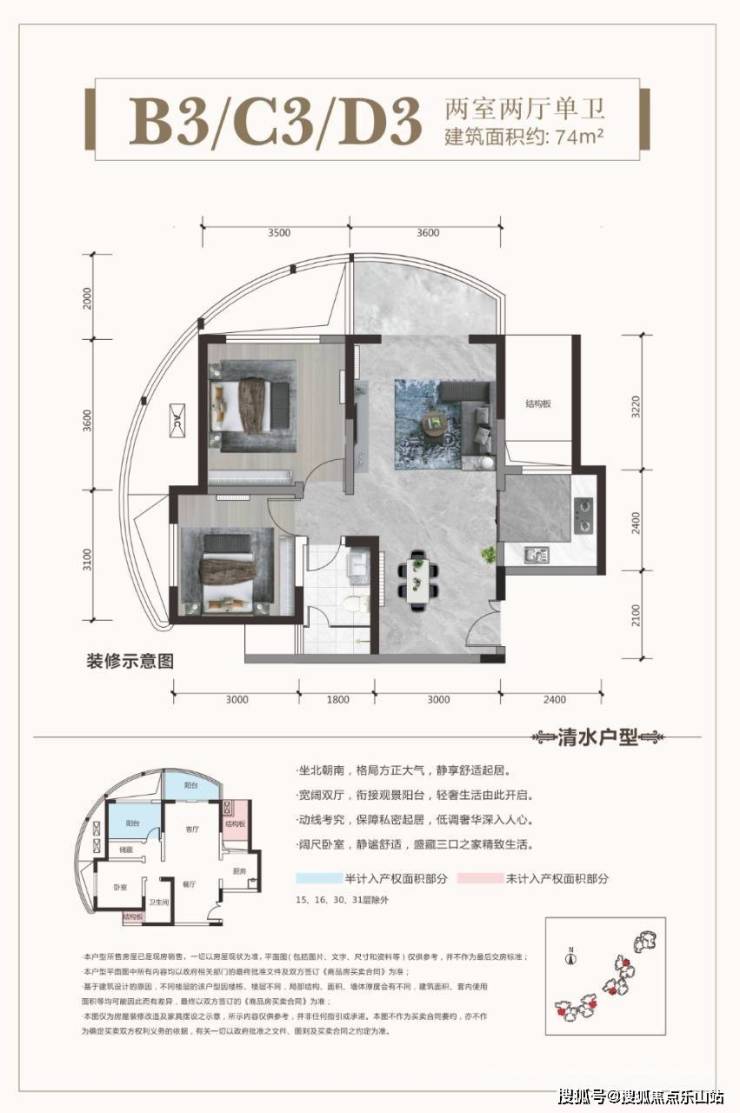 4号房C3户型:74㎡(实得约99.58㎡)【14楼以上可看江】