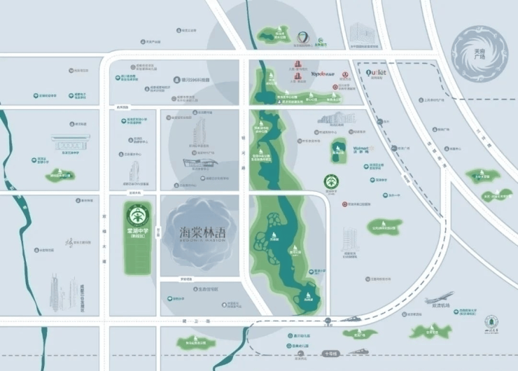 教育:棠湖中学新校区(省重点)与项目一街之隔,成都芯谷实验学校(9年制)距离约1.2公里。