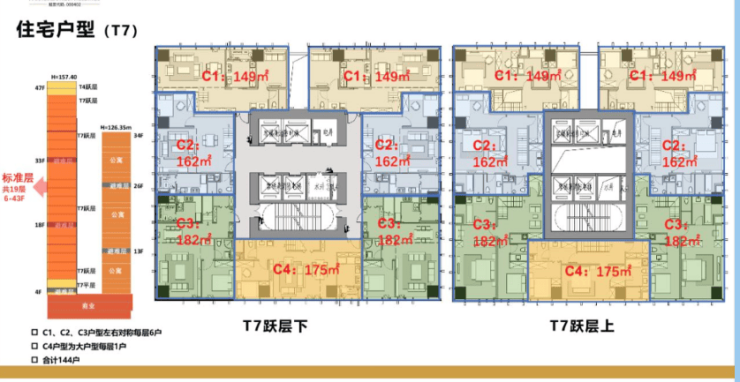 ▸ 梯户比:4T7(标准层)/4T4(顶跃)