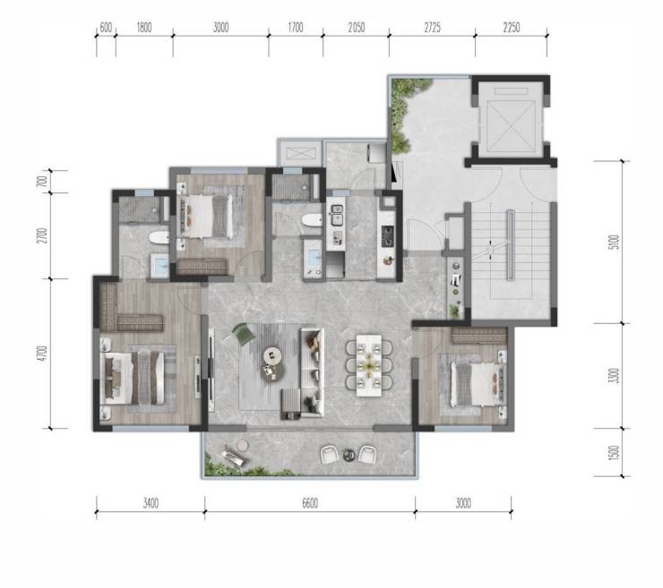 ● D户型 【建面约168㎡ 四室两厅三卫】约9M巨幕阔境阳台,阳光景观尽意挥洒N+1灵动空间,构筑生活的变幻想象