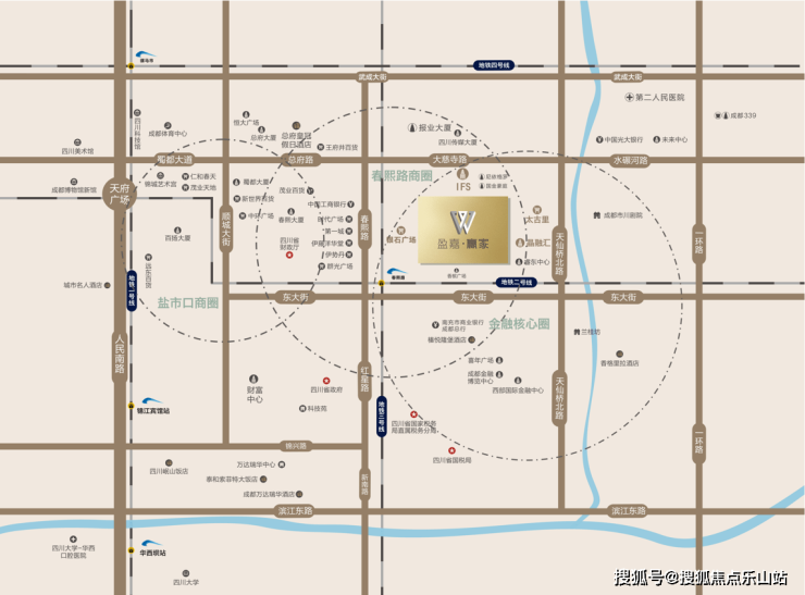 项目坐落于春熙路核心商圈,被IFS、太古里、金融汇等顶级商业体环抱,汇聚全市80%外资企业、200+金融机构及10万办公人群,日均客流量超50万人次,堪称成都商业价值制高点。