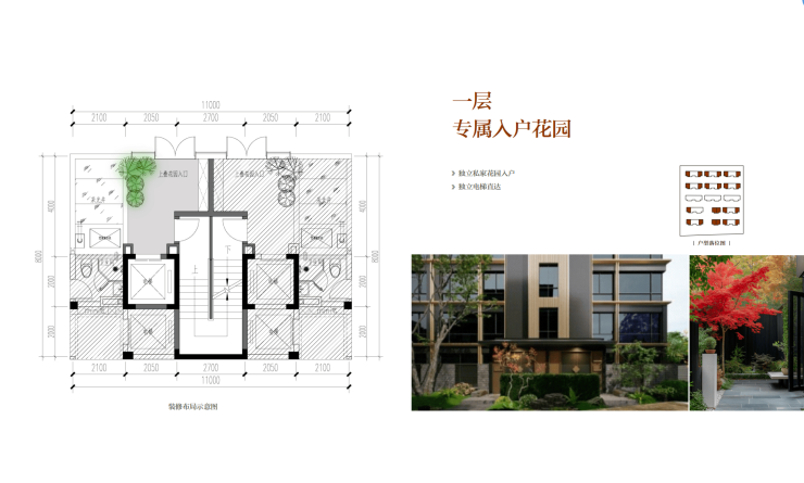 花园面积约57㎡(入户花园约17㎡+屋顶花园约40㎡)