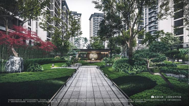 【盛世唐风园林】以“古邻昭觉·诗居胜地”为景观设计主题,利用三重景观空间,构筑一环两轴三中心八园规制,营造诗意美学社区,实现一重庭院一重景的千年东方园林风格,造就东方生活仪式感。