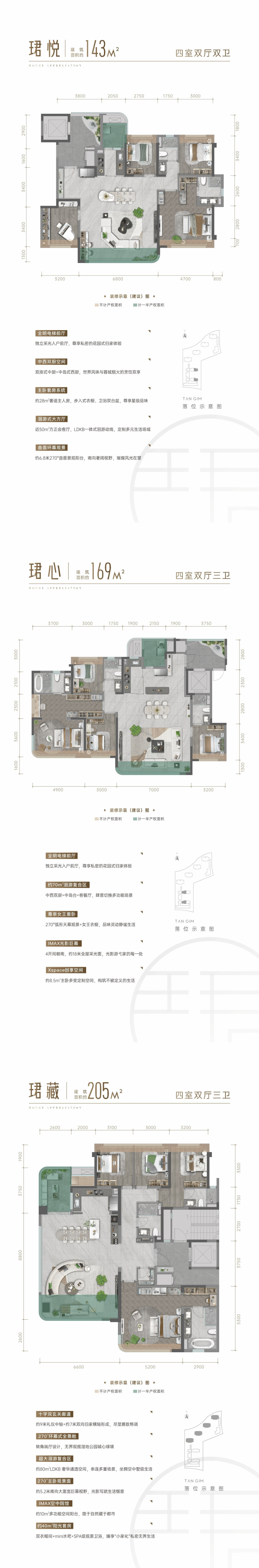 户型面积约143㎡起步,主力户型直接拉到建面约169-205㎡,