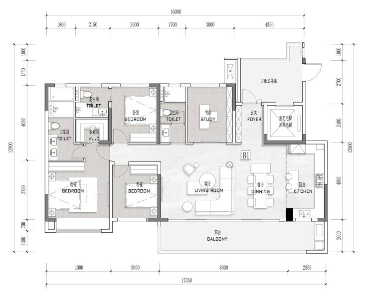 ①141-199㎡套四、套五 1T1、2T2纯板式宽幕洋房。