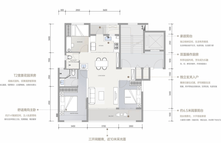 【LDKB社交厅】约6.9米大面宽客餐厅与厨房、阳台无界连通