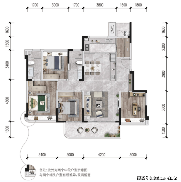 129㎡户型为例,两间卧室带飘窗,约12㎡的景观阳台,居住舒适感拉满。