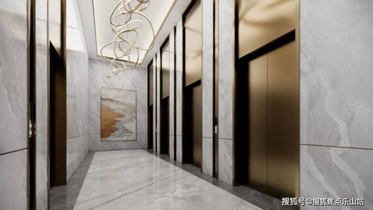 6、德国蒂森克虏伯电梯,一线匹配一线。1000KG超大容量,速度达到2.5米/秒,2.3米电梯门,从细节处匹配业主的大气格局