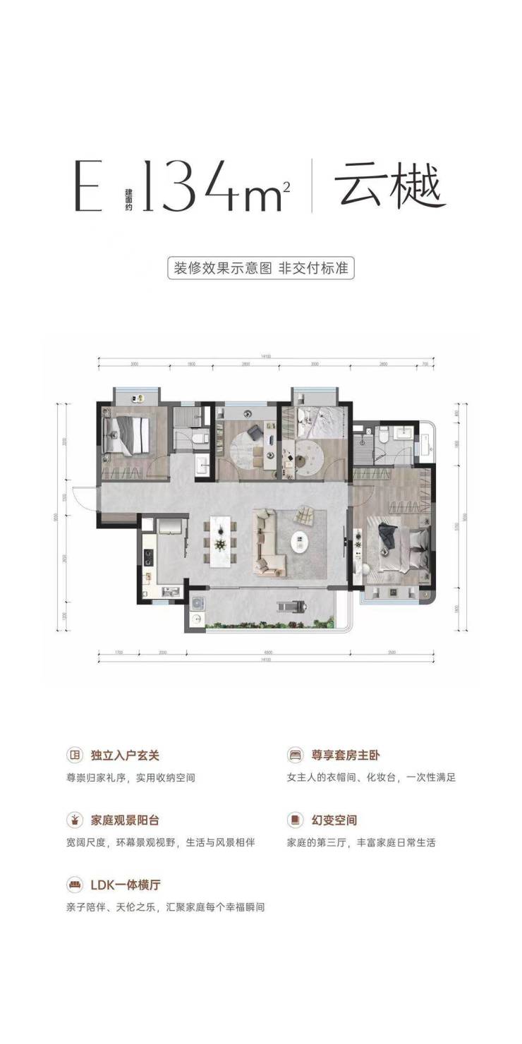 134㎡四房:横厅设计+双卫,改善标杆